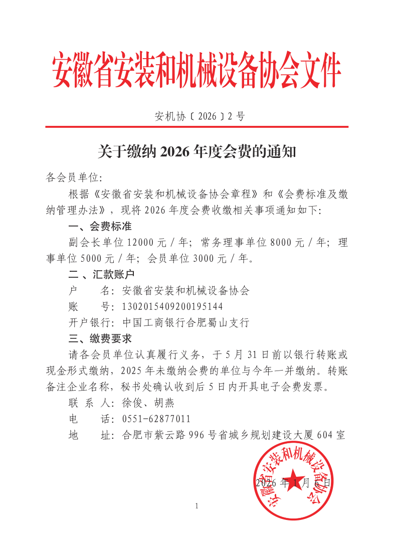 关于缴纳2026年度会费的通知