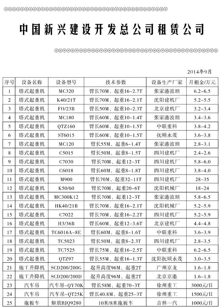 中国新兴建设开发总公司租赁公司租赁信息